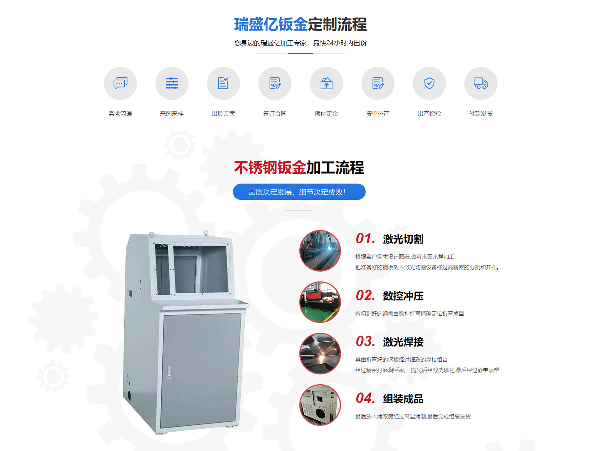 瑞盛億金屬制品(廈門)有限公司是由原廈門市鼎利達工貿有限公司(行業(yè)20年經驗)基礎上(管理團隊,骨干員工均不變)新成立的一家專門從事精密鈑金生產的企業(yè),公司主營:鈑金、機柜箱、設備機架、不銹鋼制品等。本公司將以誠信、專注、品質及時為客戶創(chuàng)造更具價值的產品,為客戶創(chuàng)造價值,贏得客戶的信任和支持,讓客戶和員工滿意是本公司可持續(xù)發(fā)展的根本保證,我們將秉承這一理念貫穿整個生產、經營活動中,保持與客戶長期、持續(xù)的合作。